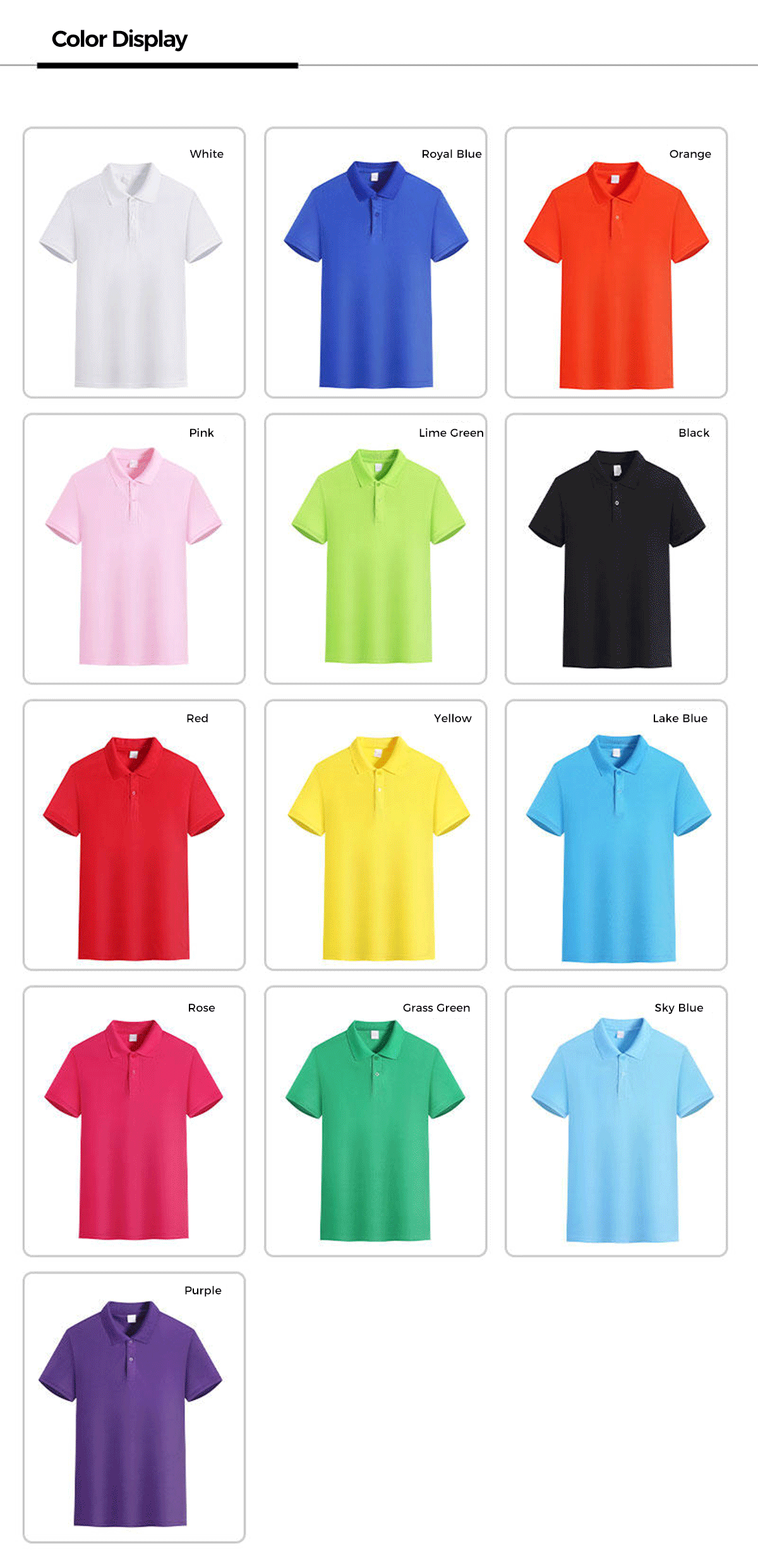 Pink ,Orange ,Royal Blue ,Black ,Rose Red ,White ,Grass Green ,Sky Blue ,Red ,Yellow ,Lake Blue ,Fruit Green ,Purple ,Gray ,Navy Blue |